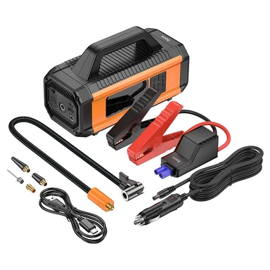 Hoco QS4 çoxfunksiyalı avtomobil aksesuarı olaraq jump starter, hava nasosu və powerbank funksiyalarını bir arada təqdim edən praktik cihazdır. 10000 mAh tutuma malik batareyası sayəsində avtomobil akkumulyatoru zəiflədikdə işə salma imkanı yaradır, eyni zamanda təkərlərin şişirdilməsi və mobil cihazların enerji ilə təmin olunması üçün istifadə olunur. Kompakt və portativ dizaynı ilə avtomobildə daşımaq üçün uyğun seçim hesab olunur və fövqəladə hallarda etibarlı köməkçi rolunu oynayır.